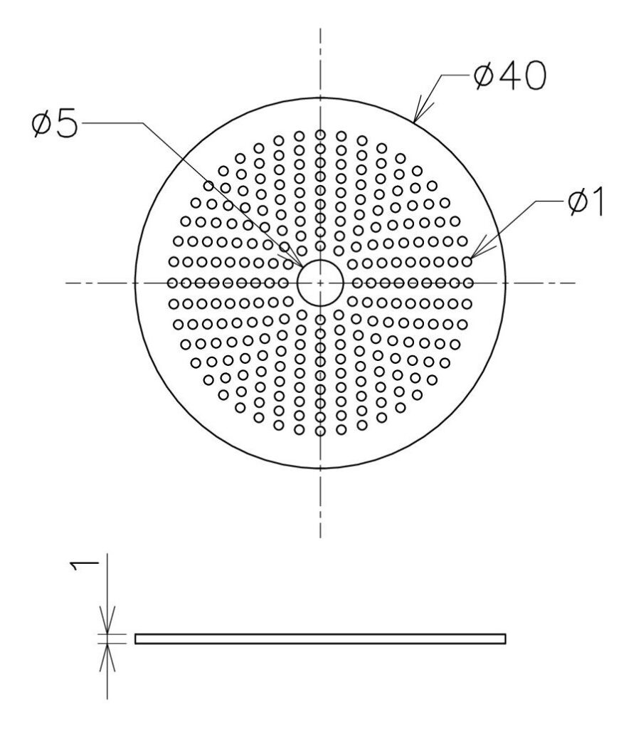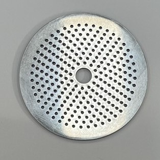 SUS304 板厚1㎜の素材を使用して、φ40の小さな製品の中にφ1の非常に小さな丸ピアスを数百加工しています。